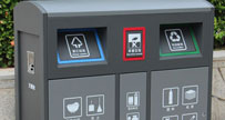 樂山萬人小區位于四川省樂山市市中區平江中街,為改善小區環境,響應國家垃圾分類政策,找到專業垃圾桶廠家選購這款剛制四分類垃圾桶。表面做可回收垃圾、有害垃圾、不...