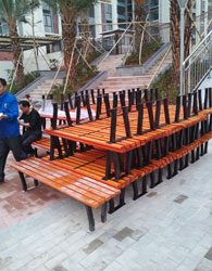 為迎合陽江市陽東縣金桂賓館現代、穩重、高雅,舒適的建筑特色,向我公司訂購了一批休閑凳/公園凳、休閑椅/公園椅歐式的風格配上高雅的火山紅椅面為整個金桂賓館添上了點綴的畫筆,更是方便了賓館人員的生活休息,提高了娛樂賓館人員生活質量。