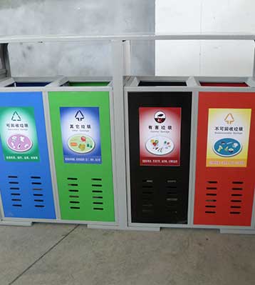 F139戶外鋼板四分類垃圾桶