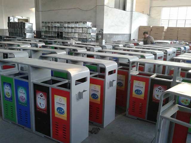 欣方圳鋼制戶外四分類垃圾桶!