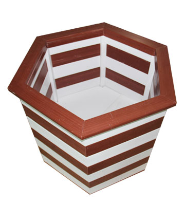 • 產品材質:塑木花箱指木塑復合材料,經擠壓、模壓、注塑成型等塑料加工工藝,生產出的型材制作而成的花箱。